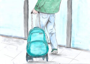 Een paar dagen later vond de “rollerparade” plaats, dat wil zeggen: de studenten (v,m,x) werden massaal uitgenodigd om met hun bagage-trolley in langgerekte stoet op te stappen van het station richting Grote Markt, bedoeling was om met de rollende wieltjes een gigantisch kletterend muziekstuk te maken, ik verklaar me nader: dit werd opgevat als een vorm van… kunst, begeleid en gestuurd door professionele artiesten, die de jonge kudde te dien einde voorzien hadden van bordjes met opschriften zoals “freedom, peace, love, liberty” en andere onspitsvondigheden in wat stilaan de eerste taal van onze Vlaamse stad is: het Engels.