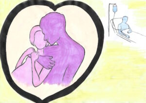 Zo heeft ze ook zijn laatste levensmoment gemist. Ze was er niet toen onze jongen “ja”zei tegen de verlossende dood, hij wou definitief inslapen, hij aanvaardde dat finale spuitje. Dat fluisterde hij nog met een ultieme krachtinspanning in het oor van zijn vader. Ik hoop dat mijn kleindochtertjes dit trieste relaas over hun liefdesoma later zullen lezen.